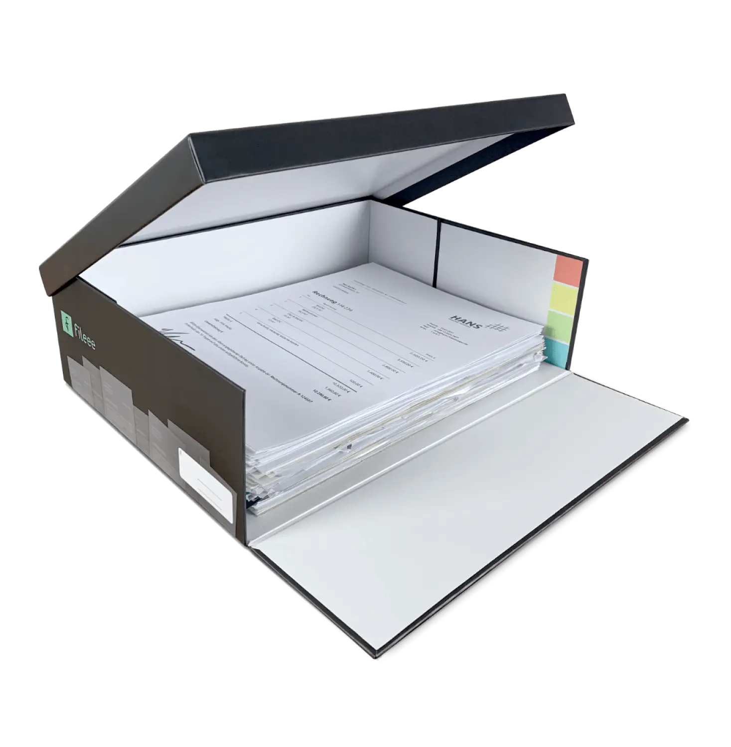 Scanne Deine Dokumente mit der fileee-App und bewahre sie in der fileeeBox auf. So kannst Du jederzeit schnell auf die Originale zugreifen – ohne dabei Zeit mit lästigem Abheften zu verschwenden.