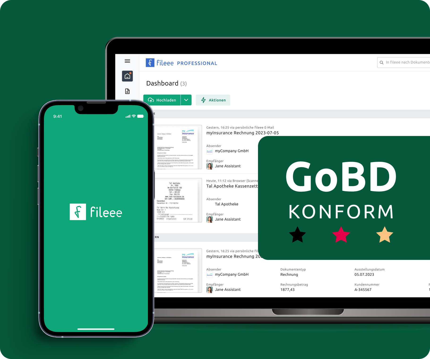 Rechtssicher mit fileee; Sortieren entfällt dank fileeeBox, Originale bleiben sicher.
