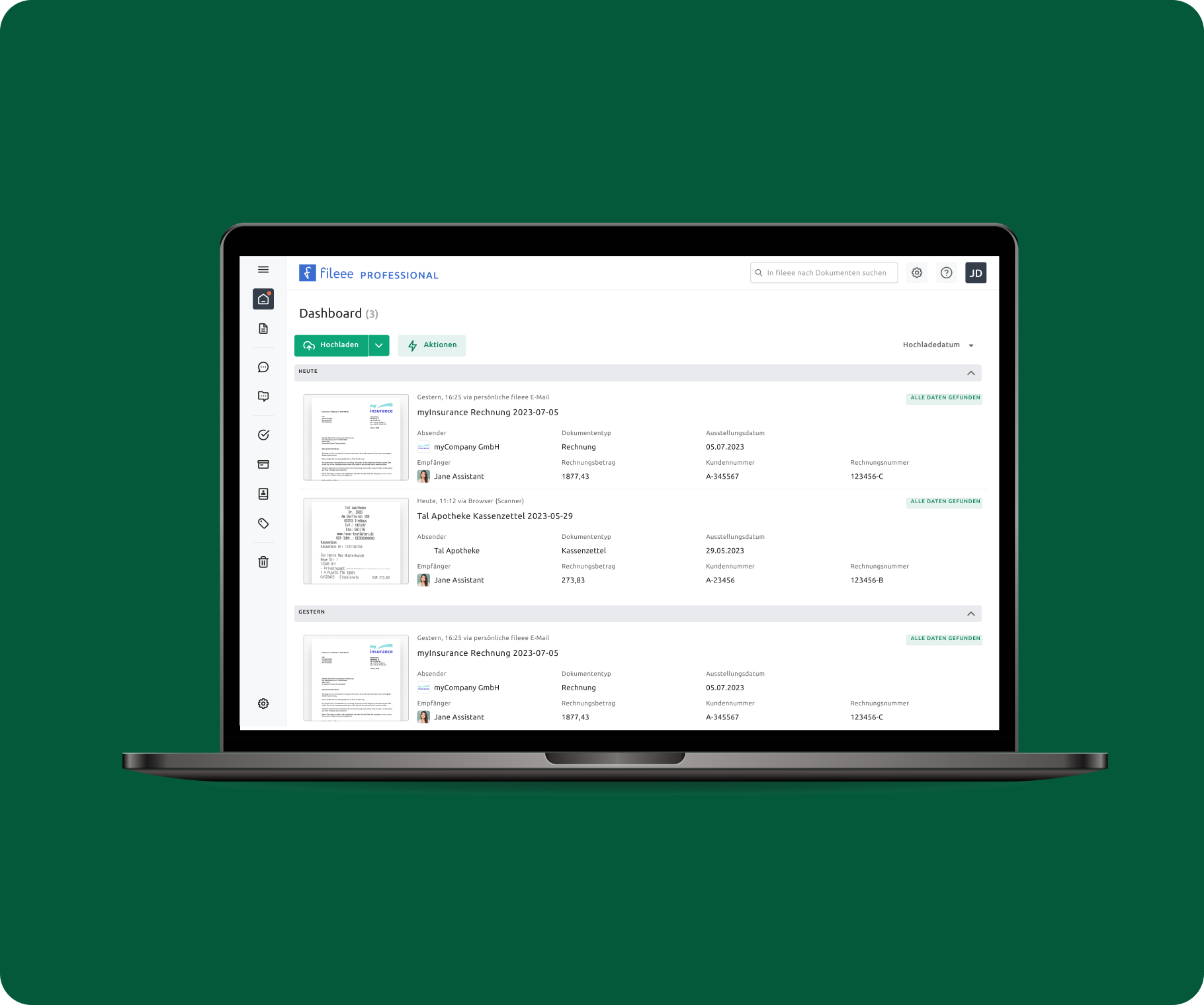 All deine Dokumente bequem über den Laptop oder von unterwegs mobil einsehbar.